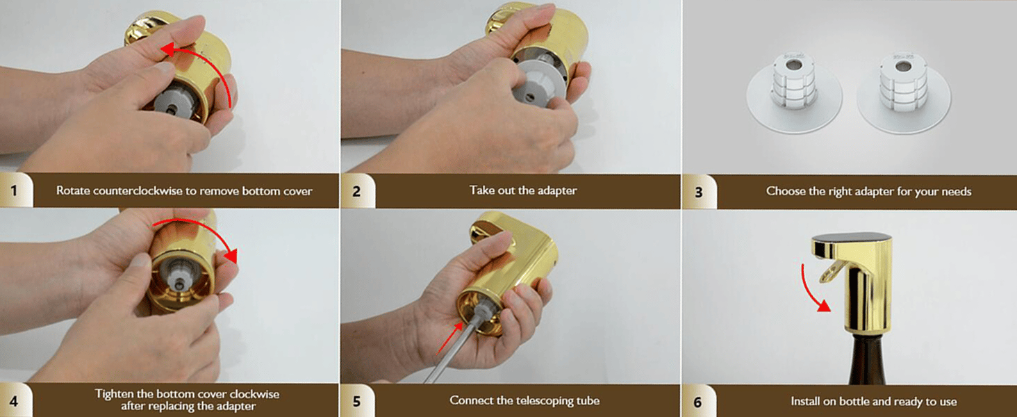 The wine dispenser is suitable for different bottle openings, Retractable straw suitable for bottle height 165mm-385mm; can dispense sake, whiskey pump, shochu, fruit wine, rice wine, spirits and wine.